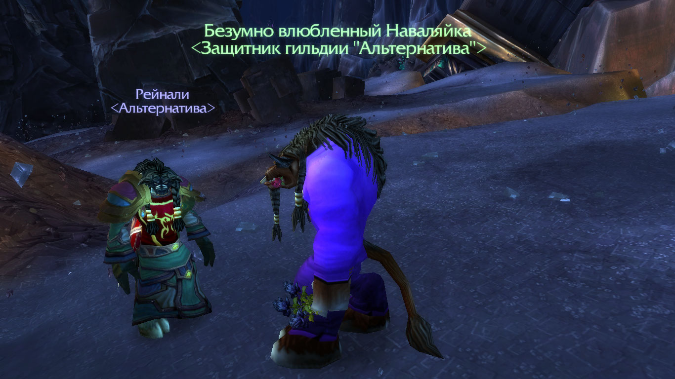 Таурен был весь черный, как самые потаенные уголки некогда одного из самых опасных мест Азерота, наводившего ужас на все живое одним лишь своим названием, а сейчас ставшим лишь жалким убежищем для еще оставшихся в живых приспешников Клана Черного Железа. В нелепом лиловом костюме, с букетом опять же иссиня черных роз, а из его широко расстопыренных ноздрей вырывались пар и ярость. Зрачки на миг расширились и налились кровью. В памяти огненной пеленой вспыхнули давние воспоминания, когда он еще молодым, но уже крепким воином первым врывался в ряды нежити, круша их кости своим верным осадным щитом из казавшейся на то время безукоризненной титановой стали. А затем его братья по оружию, ведомые стальным командирским криком, бесстрашно забрызгивали алой кровью и прочими внутренностями поверженных врагов свои начищенные до блеска доспехи с гордой эмблемой Серебрянного Авангарда...